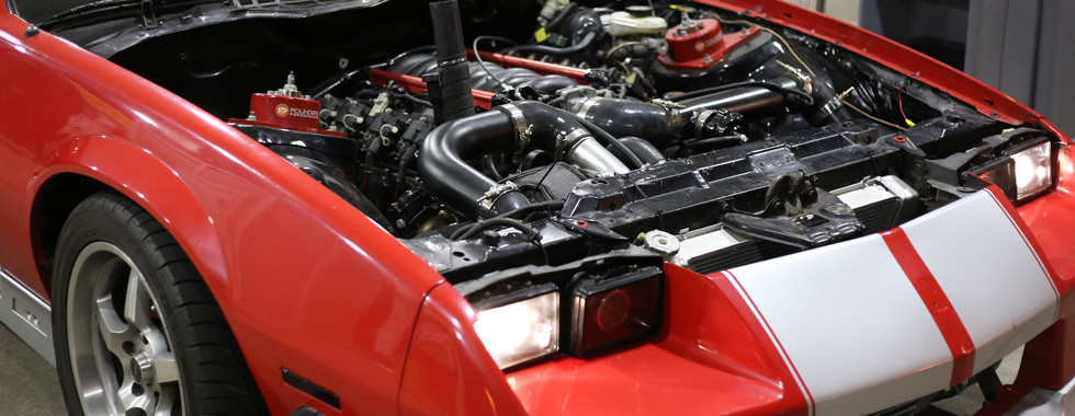 With the new engine in, it was time to build a cold side and punch a hole in the fender. Once the body was all set, it was time to just button up wiring and fuel system components. I picked up on the basic functionality of the MS3 Gold Box pretty quickly, but I really had no idea how to tune the car. I was on the sloppy mechanics base tune and set the fuel tables to auto tune and hoped for the best. I had also planned on cutting a hole in the hood for the waste gate once everything was ironed out. SPOILER ALERT - I never actually got the car tuned, and the hood never goes back on. As time went on, I was more hesitant to cut the hole knowing that this turbo kit wouldn't be the last.